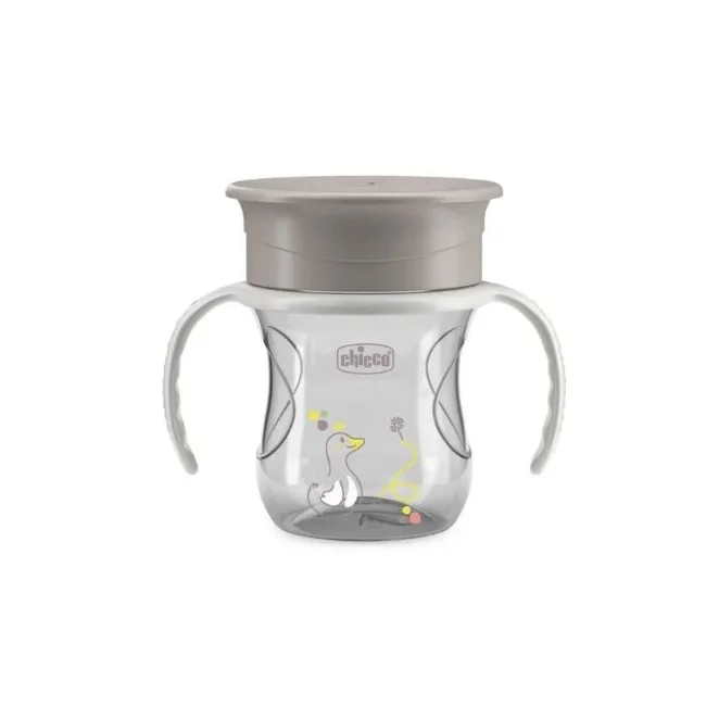 La Tazza Perfect X 360° Neutra Chicco 12m+ è progettata per aiutare i bambini a bere in modo autonomo, simulando l'esperienza del bere da un bicchiere ma con la sicurezza di una valvola anti-goccia. È consigliata per i bambini a partire dai 12 mesi.