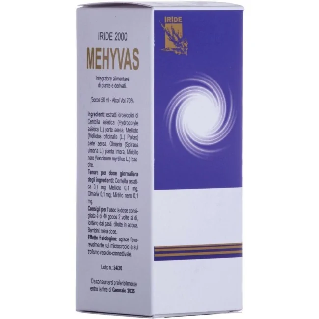 Mehyvas Gocce è un prodotto dell'azienda Iride 2000, specializzata in rimedi naturali a base di fiori di Bach e fitoterapici. Questo integratore alimentare è formulato con una combinazione di estratti vegetali selezionati per le loro proprietà benefiche sulla circolazione e sul tessuto connettivo.