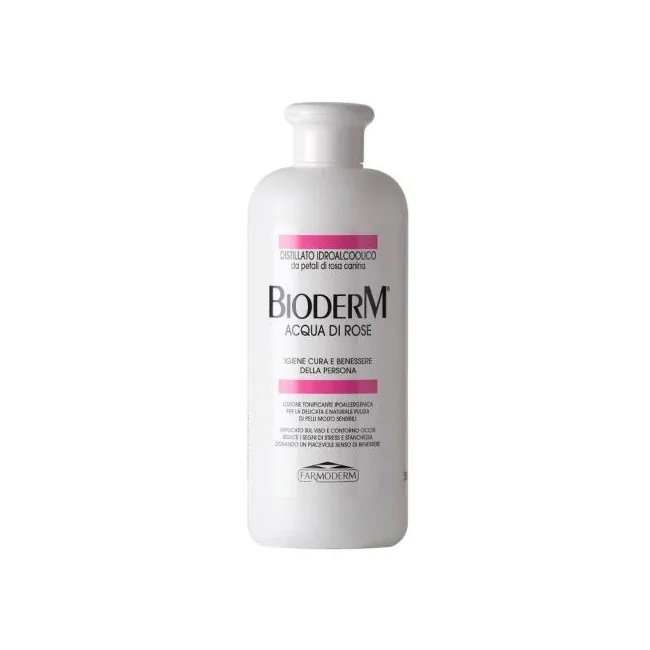 L'Acqua di Rose Bioderm di Farmoderm è una lozione tonica delicata per il viso, con estratti di rosa canina, adatta a pelli sensibili, miste e grasse. Rimuove impurità, tonifica e dona freschezza, con proprietà antiossidanti. Formato: 500 ml