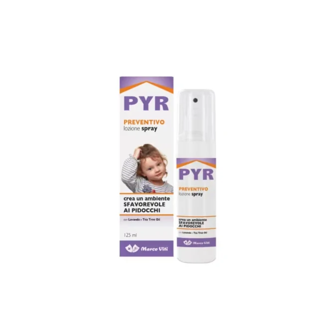 Pyr Preventivo Spray di Marco Viti è un trattamento cosmetico specifico, oggi disponibile in una nuova formulazione potenziata, studiato per creare un ambiente sfavorevole all'insediamento dei parassiti del cuoio capelluto. Formato: 125 ml