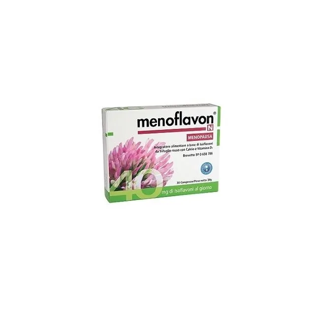Menoflavon N integratore alimentare a base di isoflavoni da Trifoglio rosso, Calcio e vitamina D3. Utile nel contrasto dei disturbi della menopausa.