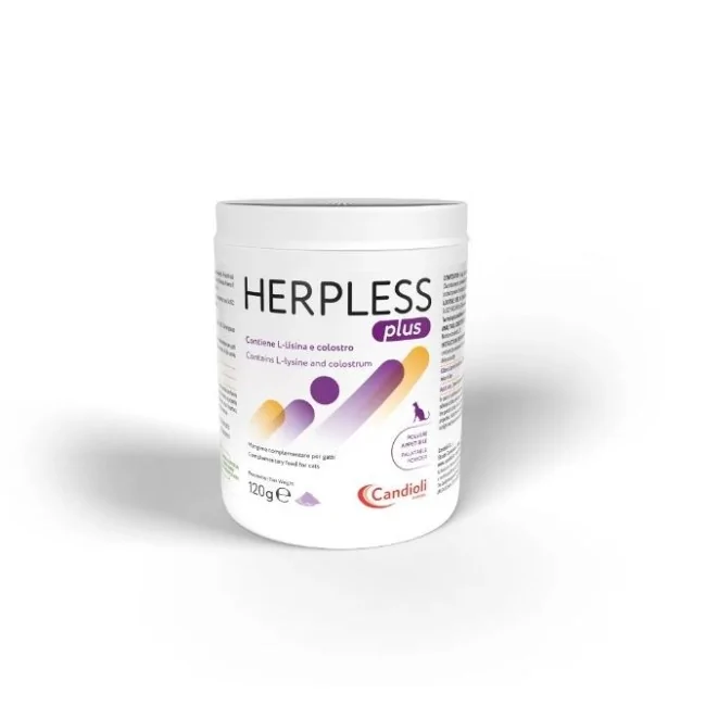 Herpless plus polvere appetibile è un mangime complementare per gatti utile per rafforzare le difese immunitarie. Formato 120 grammi