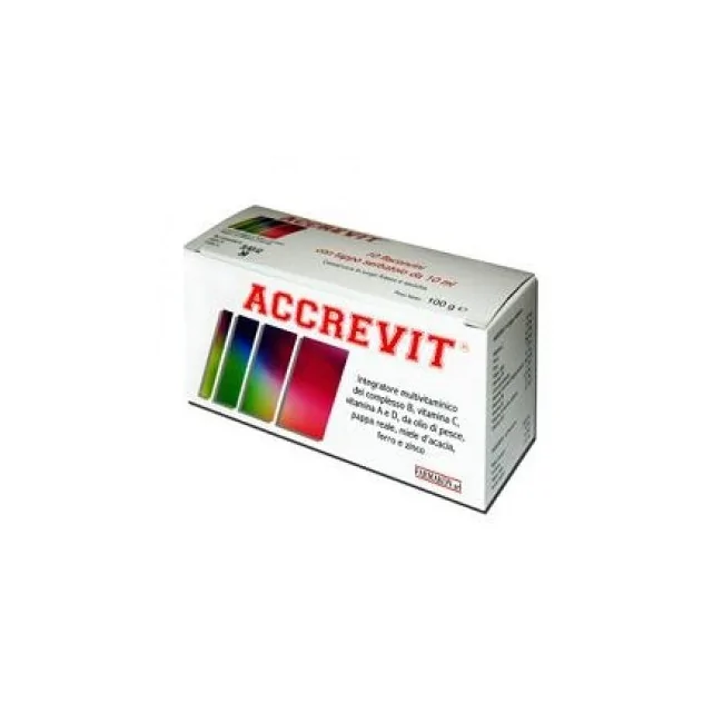 Accrevit flaconcini è un antiastenico indicato in adulti e bambini a base di vitamine del complesso B, vitamina C, vitamina A e D3.