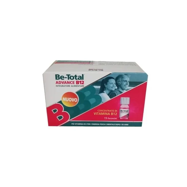 Betotal advance B12 15 flaconcini formulato per fornire un sostegno all'organismo in caso di stanchezza fisica e mentale. La capacità dell'organismo di assorbire alcuni nutrienti essenziali, tra i quali la vitamina B12, tende a ridursi fisiologicamente negli anni. Be-Total Advance B12 contiene un alto dosaggio di vitamina B12, calibrato proprio per i bisogni delle persone dopo i 50 anni.