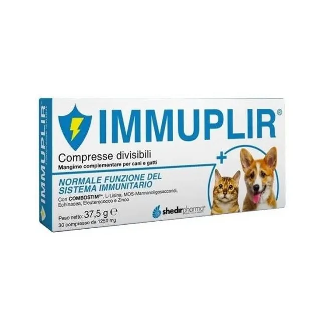 Immuplir è un integratore alimentare prodotto da Shedir Pharma, specificamente formulato per rafforzare il sistema immunitario di cani e gatti. Grazie alla sua composizione, Immuplir contribuisce a mantenere le difese naturali dell'animale, aiutandolo a far fronte a stress, cambi di stagione e altre situazioni che possono indebolire il sistema immunitario.